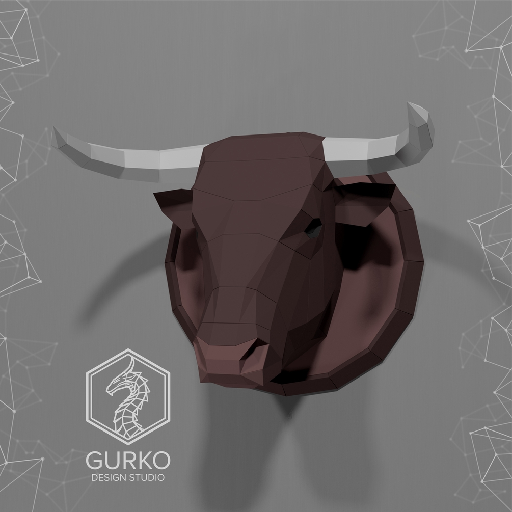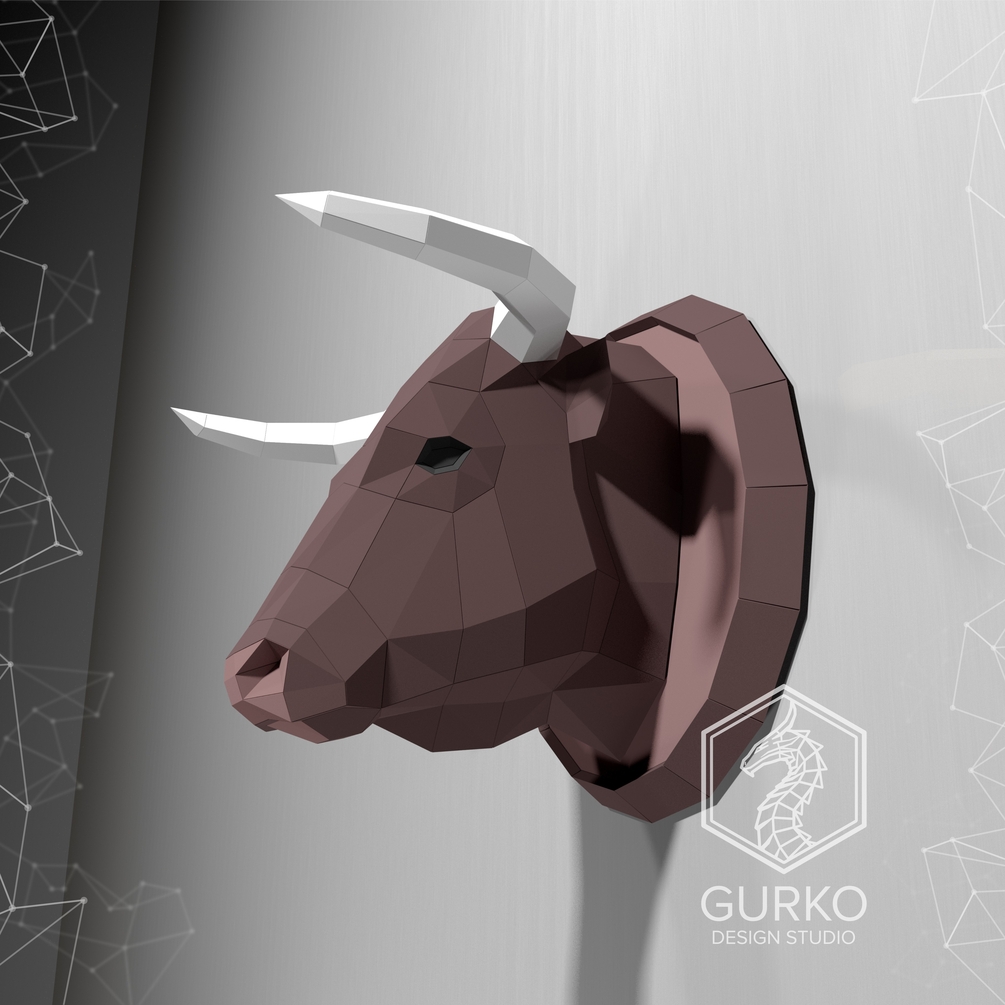 Bull head, Gurko, NorthPoly, Papercraft, Pdf download, 3D, Polygon, DIY Paper, decor PDF pattern, pepakura, lowpoly, PDF template, trophy